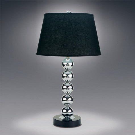 Elevate your space with the modern allure of this sleek table lamp. The fusion of contemporary design with classic elegance provides a stunning statement piece that captivates and illuminates. Its striking reflective spheres catch the eye, bringing a touch of glamour to any room. 29"H & Rotary switch, 100 Watt
