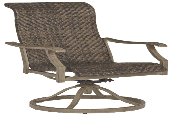 Inspired by high-style modern farmhouse interiors, this outdoor swivel chair conveys a warmth and sophistication that’s just your style. Curvaceously beautiful, with a high-back design, this head-turning outdoor swivel chair is dressed to impress with an all-weather resin wicker seat that melds light and dark brown hues for tonal interest....