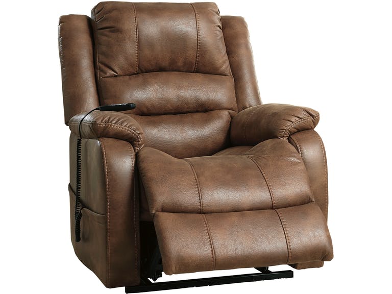 Double your pleasure and your sense of style with this stunning power lift recliner. Dual motor capability gives you the freedom to recline back and elevate your legs independently for more custom comfort positioning, and with the touch of a button, the power lift feature gently eases you from the ultimate slumber into a lift-and-tilt position to effortlessly get you back on your feet. Although the designer upholstery may look like gently battered leather, it’s actually a feel-good fabric with warm, cozy appeal.